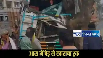 आरा में पेड़ से टकराया ट्रक - फोटो : news4nation