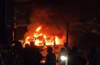 आक्रोशित भीड़ ने पुलिस वाहन फूंका