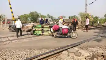 ट्रेन आने से पहले पटरी पर पलटा टोटो, स्थानीय लोगों और ट्रैफिक पुलिस मदद से टला बड़ा हादसा