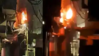 बिजली पोल में लगी आग