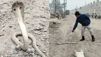 Vaishali -  वैशाली जिले के सराय थाना अंतर्गत पोखरिया गांव में उस वक्त सनसनी फैल गई, जब भीषण ठंड के बीच मिट्टी कटाई का काम चल रहा था। इसी दौरान जमीन के अंदर से अचानक एक दुर्लभ सफेद रंग का कोबरा (Albino Cobra) बाहर निकल आया। बर्फ जैसे सफेद सांप को देखते ही मजदूरों और ग्रामीणों में अफरा-तफरी मच गई और डर के मारे मिट्टी कटाई का काम तुरंत रोक दिया गया।
