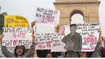 सोशल मीडिया पर वायरल हुए वीडियो में साफ दिखता है कि लड़के-लड़कियां ‘बचाओ पर्यावरण’ के पोस्टरों के साथ लाल सलाम की तर्ज़ पर नारेबाज़ी कर रहे हैं। एक बैनर पर लिखा था-“दिल्ली सरकार होश में आओ।”