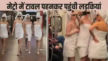 मेट्रो में टावल पहनकर पहुंच गई लड़कियां- फोटो : SOCIAL MEDIA