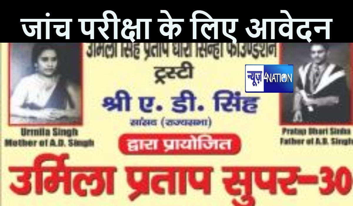 उर्मिला प्रताप सुपर-30 की जांच परीक्षा 15 जनवरी को, जल्दी करें आवेदन... नीचे दिये गये लिंक पर भी भर सकते हैं परीक्षा फॉर्म