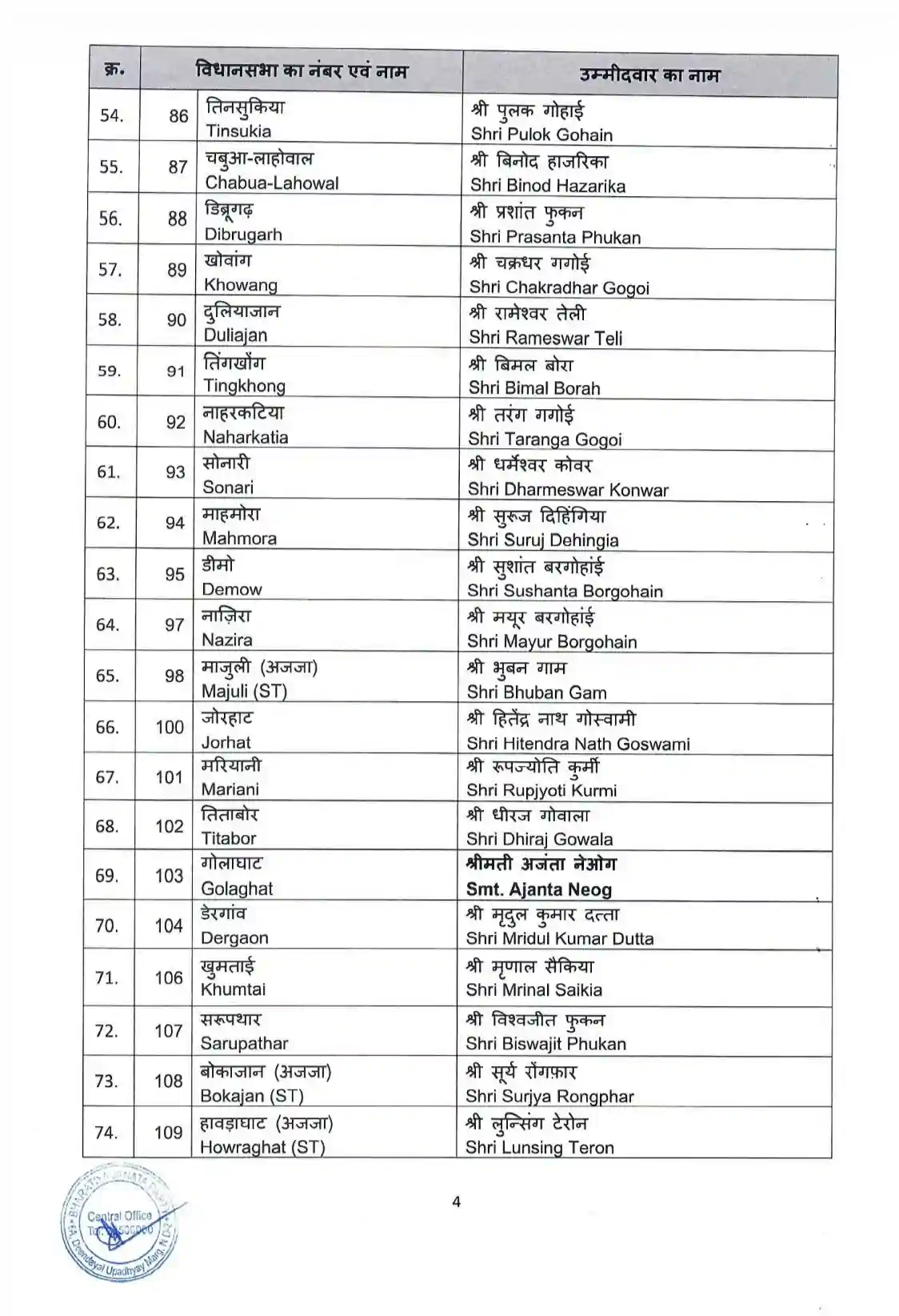 असम विधानसभा चुनाव: बीजेपी ने जारी की पहली सूची, 88 उम्मीदवारों का ऐलान, एक दिन पहले ही कांग्रेस छोड़कर आए सांसद को भी दिया टिकट