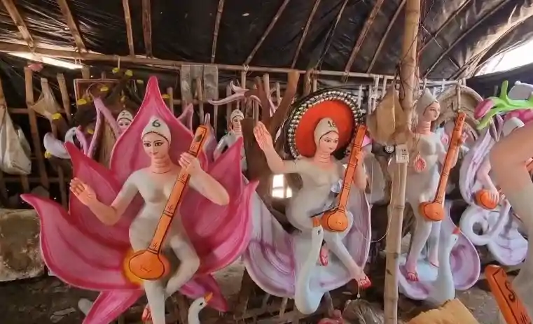 15 फीट तक ऊँची प्रतिमाएँ और गंगा की मिट्टी का जादू, बसंत पंचमी के लिए सजने लगे आरा के पंडाल, अंतिम रूप देने में जुटे कारीगर