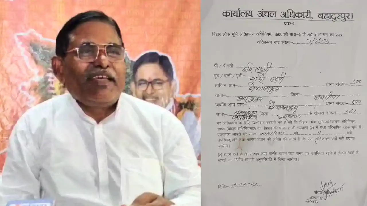 DARBHANGA : दरभंगा जिले के बहादुरपुर प्रखंड में एक बड़ा मामला सामने आया है जहाँ कुल 22 कट्ठा सरकारी जमीन पर अवैध कब्जे की बात सामने आई है। इस संबंध में, बहादुरपुर के अंचल अधिकारी (सीओ) निश्चल प्रेम ने 37 लोगों को अतिक्रमण हटाने के लिए नोटिस जारी किया है। चौंकाने वाली बात यह है कि इस सूची में बिहार सरकार के अति पिछड़ा कल्याण मंत्री हरि सहनी का नाम भी शामिल है। यह मामला इलाके में चर्चा का विषय बना हुआ है और प्रशासन पर आगे की कार्रवाई को लेकर दबाव बढ़ गया है।