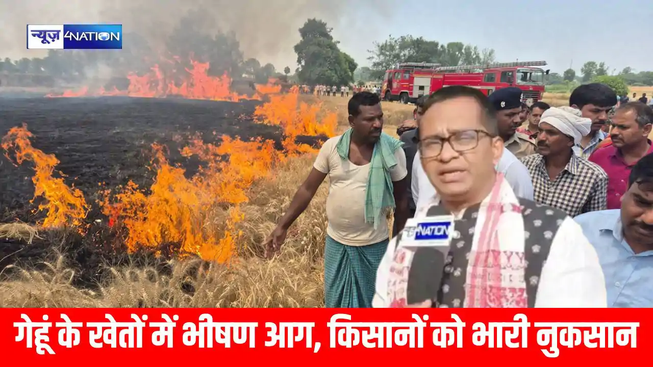 Gaya:अतरी के नैली गांव में गेहूं के खेतों में भीषण आग, किसानों को भारी नुकसान