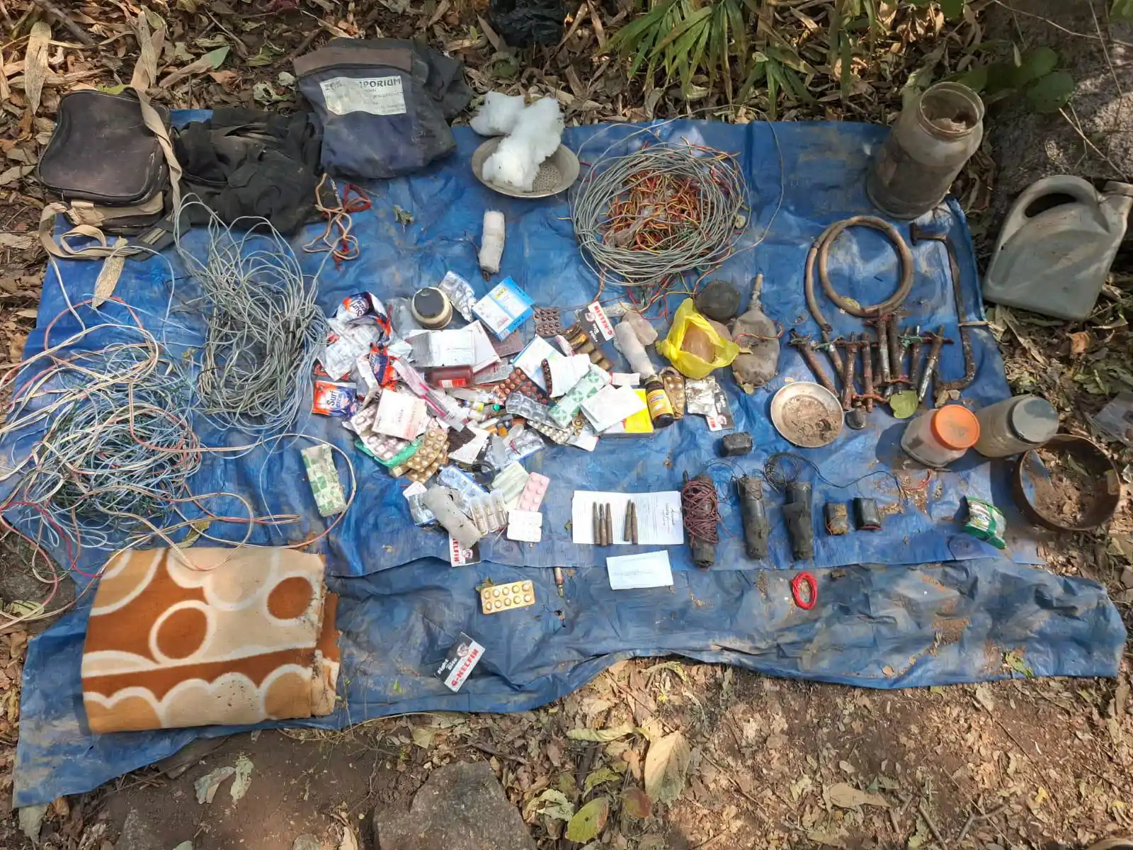 सहायक कमांडेंट राजेश कुमार मौर्य के नेतृत्व में चलाए गए इस ऑपरेशन में निम्नलिखित सामग्री बरामद की गई, जिसमें 2.5 किलोग्राम का एक आईईडी (IED) और तीन शक्तिशाली पाइप बम ।पांच जिंदा कारतूस । बैटरी, इलेक्ट्रिक वायर और गैस लाइटर ।नक्सली वर्दी (पैंट), दवाइयां, कंबल और सर्फ पाउडर जैसे दैनिक उपयोग के सामान शामिल हैं ।