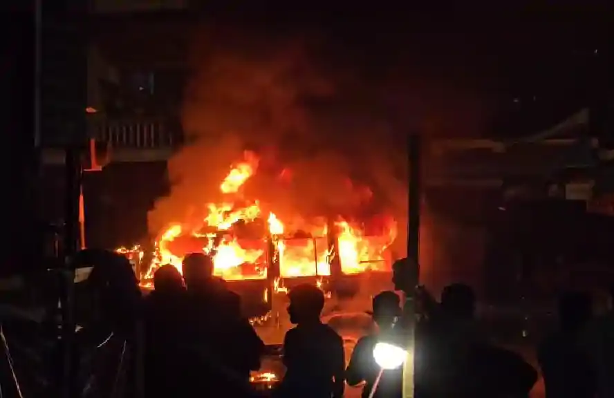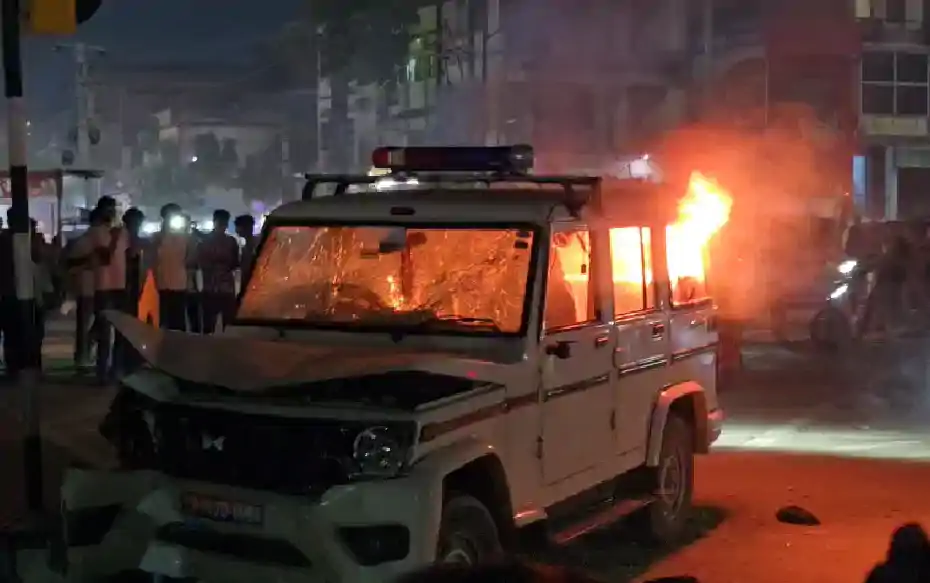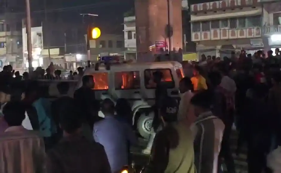 आक्रोशित भीड़ ने पुलिस वाहन फूंका