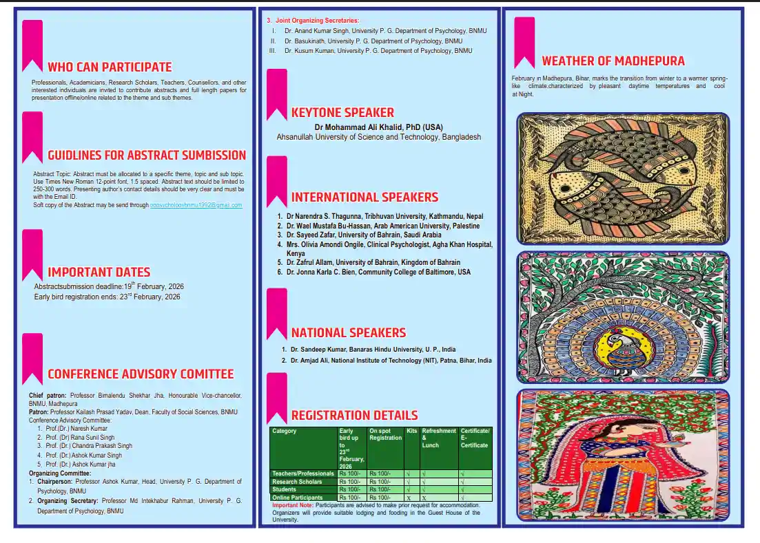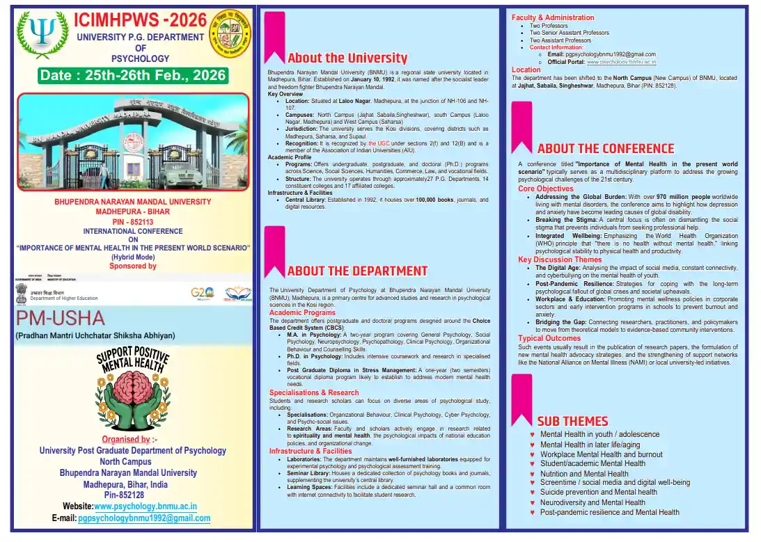 Madhepura : भूपेंद्र नारायण मंडल विश्वविद्यालय (BNMU) के मनोविज्ञान विभाग द्वारा आयोजित होने वाले अंतरराष्ट्रीय सम्मेलन ने राजनीतिक और सामाजिक तूल पकड़ लिया है। 'प्रधानमंत्री उच्चतर शिक्षा अभियान' (PM-USHA) के तहत मिले फंड के उपयोग और आमंत्रित वक्ताओं की पृष्ठभूमि को लेकर अखिल भारतीय विद्यार्थी परिषद ने विश्वविद्यालय प्रशासन को घेरा है।