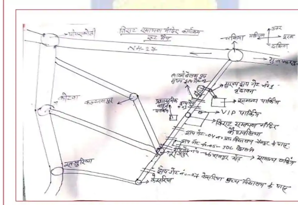 - प्रवेश द्वार: केसरिया से आने वाले लोग राजपुर के शर्मा मुखिया पेट्रोल पंप से और चकिया से आने वाले लोग शीतलपुर पेट्रोल पंप के पास से प्रवेश करेंगे ।
