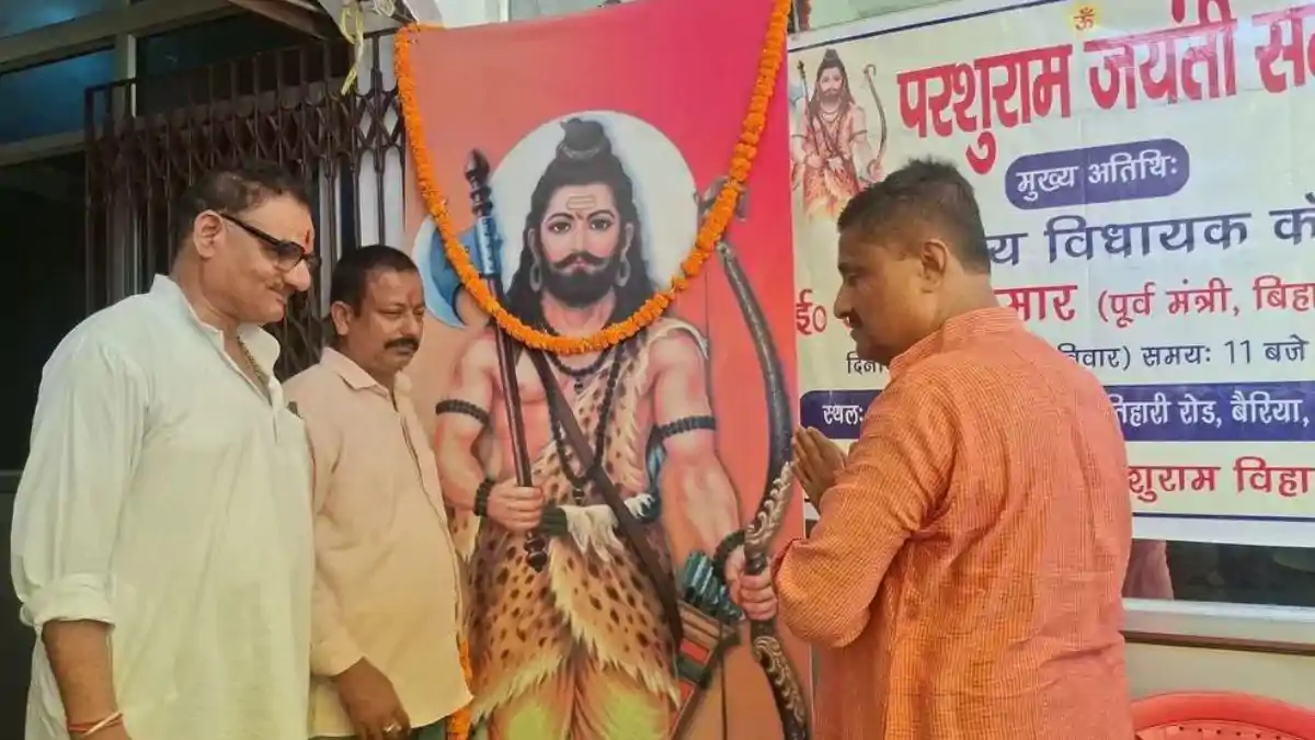 Muzaffarpur : जिले के कांटी  क्षेत्र के   बैरिया  परशुराम विहार कॉलोनी में आज रविवार को भगवान परशुराम जयंती समारोह बड़े ही श्रद्धा व उत्साह के साथ आयोजित किया गया। कार्यक्रम में क्षेत्र के गणमान्य लोगों के साथ बड़ी संख्या में स्थानीय नागरिकों की उपस्थिति रही, जिससे पूरा परिसर भक्ति और उत्सव के रंग में रंगा नजर आया।