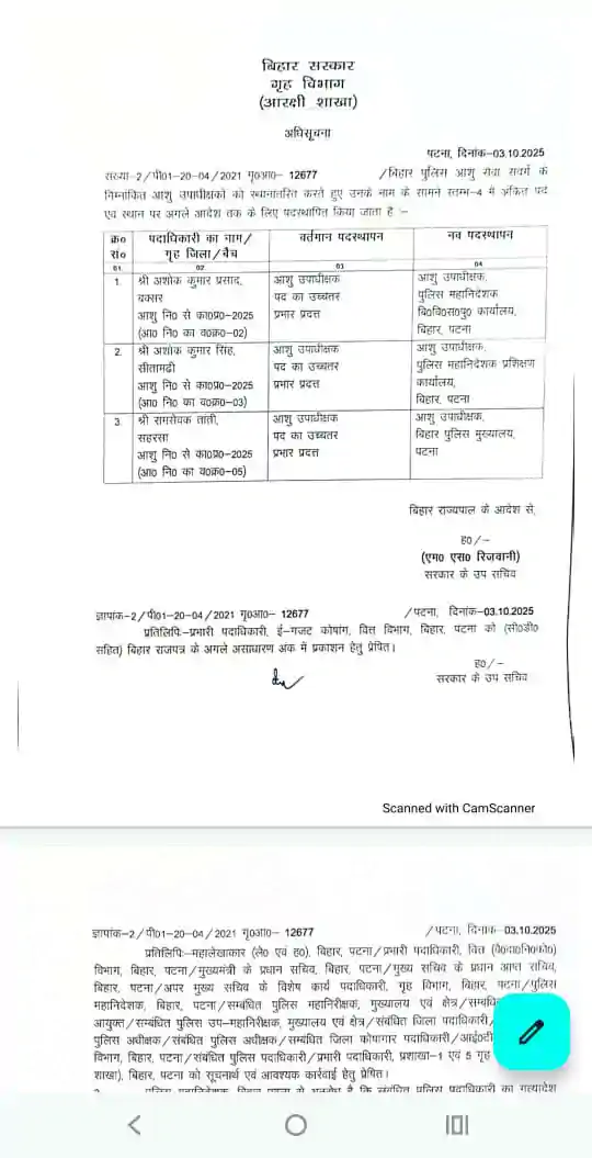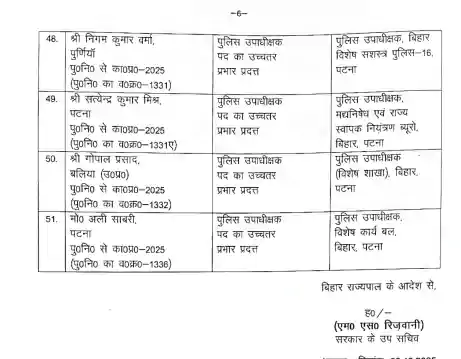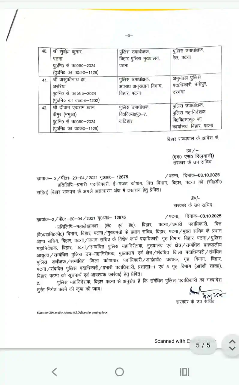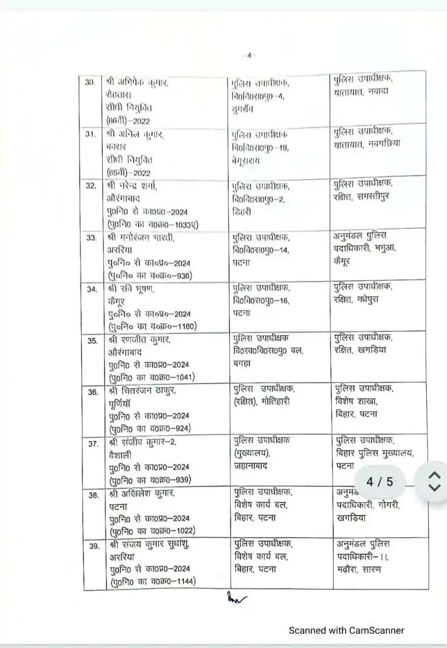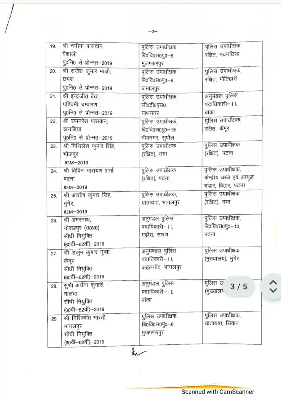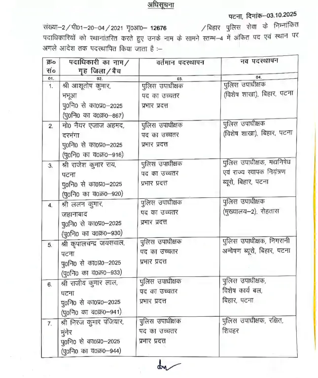 Bihar police transfer – तीन आईपीएस और 42 डीएसपी का ट्रांसफर, 51 डीएसपी को मिली पहली पोस्टिंग, नोटिफिकेशन जारी, देखे लिस्ट