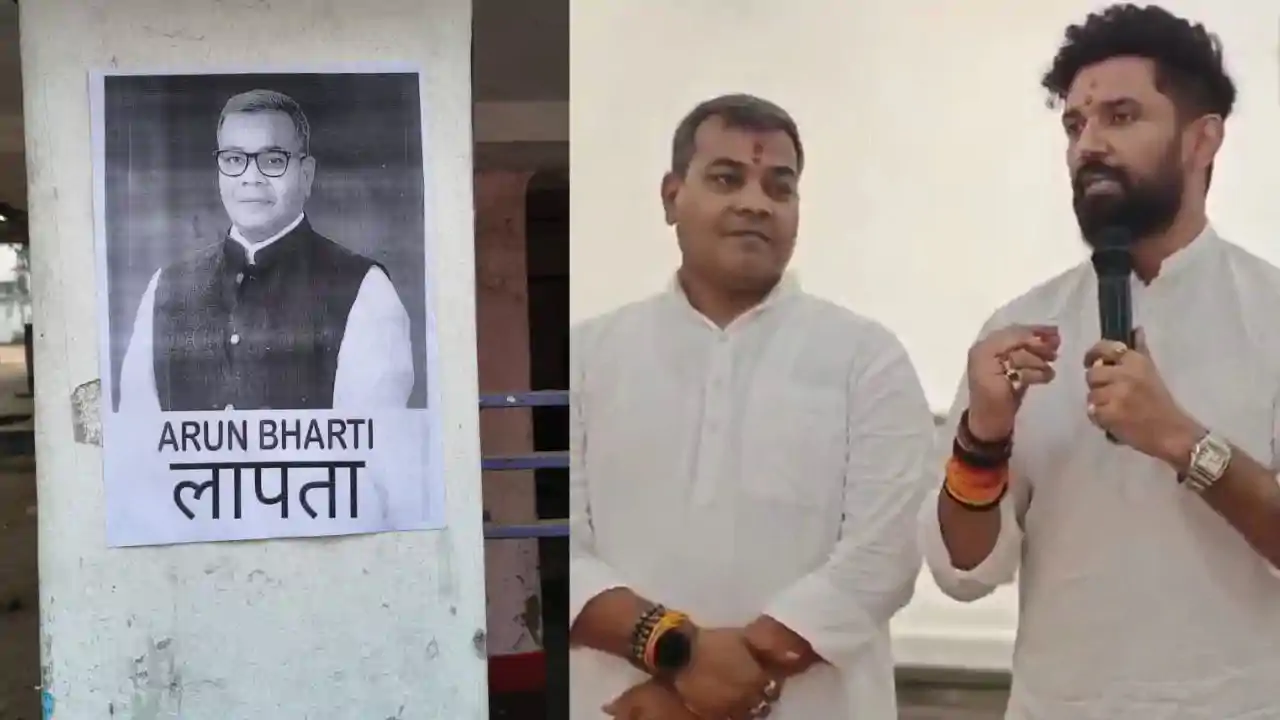 Bihar Politics: केंद्रीय मंत्री चिराग पासवान के जीजा और जमुई सांसद अरुण भारती की खोज हो रही है। जमुूई में अरुण भारती की लापता का पोस्टर जगह जगह पर लगाए गए हैं। आइए जानते हैं पूरा मामला क्या है...