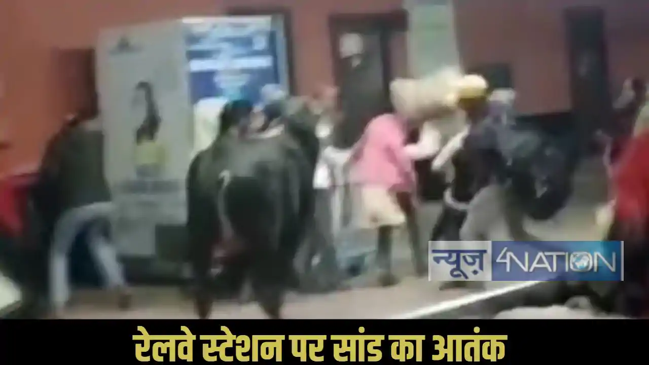 रेलवे स्टेशन पर सांड का आतंक- फोटो : news4nation