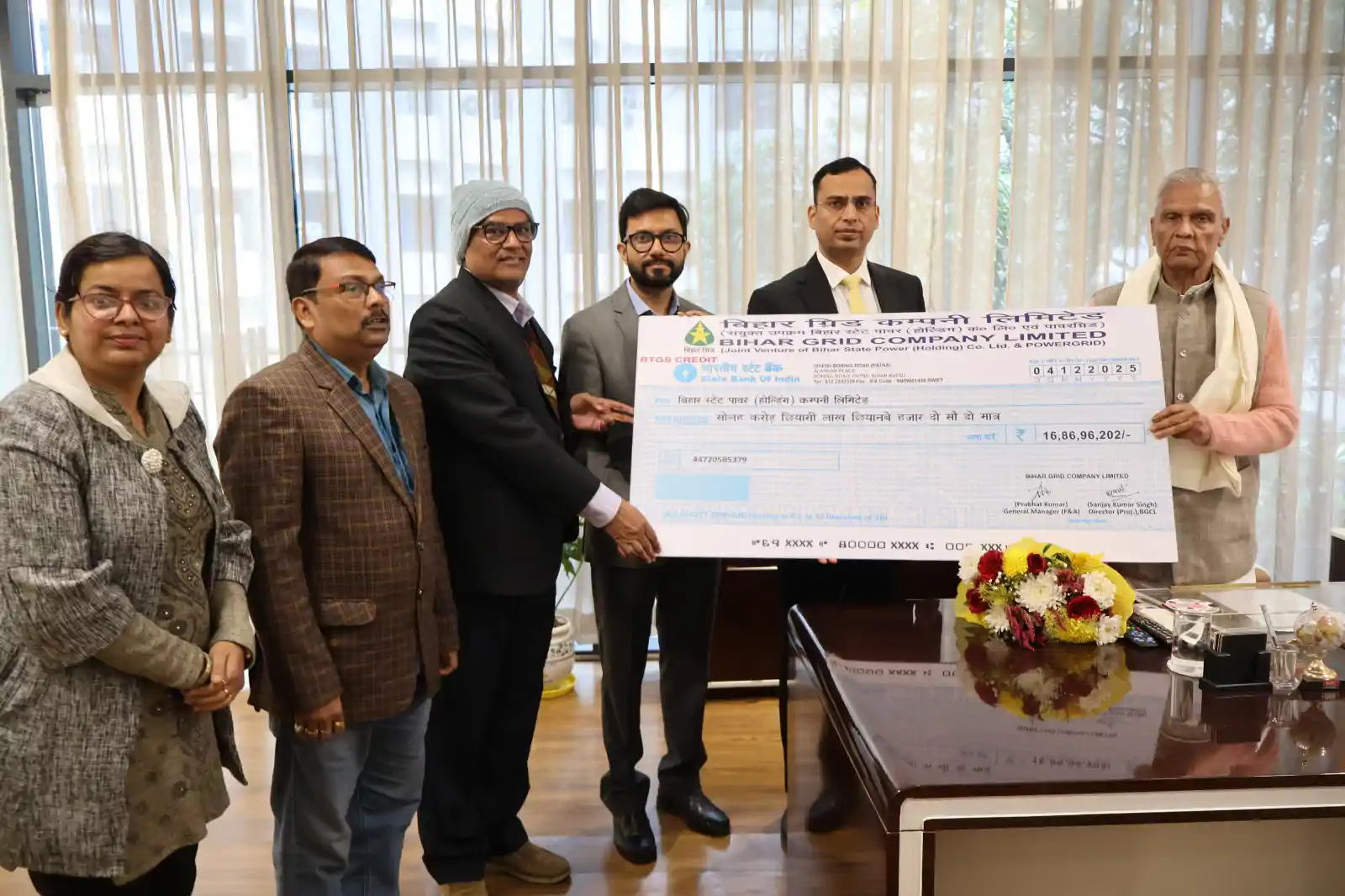 Patna - बिहार ग्रिड कंपनी लिमिटेड (BGCL) ने वित्तीय वर्ष 2025-26 के लिए एक महत्वपूर्ण वित्तीय मील का पत्थर हासिल किया है। कंपनी ने अपने इतिहास में पहली बार अंतरिम लाभांश घोषित किया है। मंगलवार को पटना में आयोजित एक कार्यक्रम में ऊर्जा मंत्री बिजेंद्र प्रसाद यादव की गरिमामयी उपस्थिति में, BGCL के प्रबंध निदेशक राहुल कुमार (IAS) ने लाभांश की 50 फीसदी राशि का चेक बिहार स्टेट पावर होल्डिंग कंपनी लिमिटेड (BSPHCL) के अध्यक्ष-सह-प्रबंध निदेशक मनोज कुमार सिंह (IAS) को सौंपा।