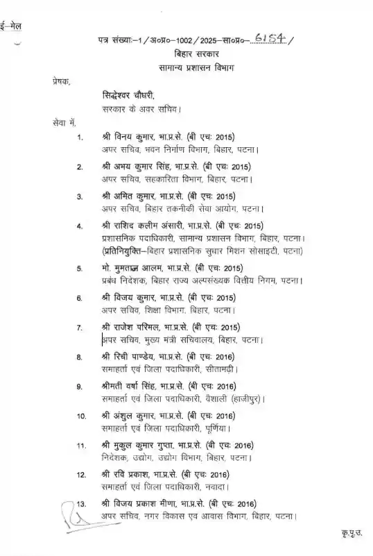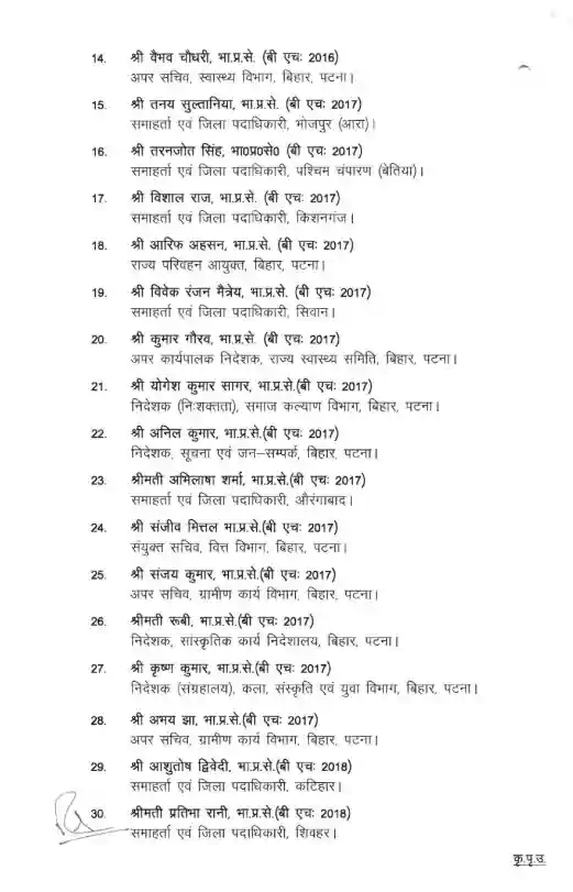 बिहार संवर्ग के 38 अधिकारियों की सूची जारी