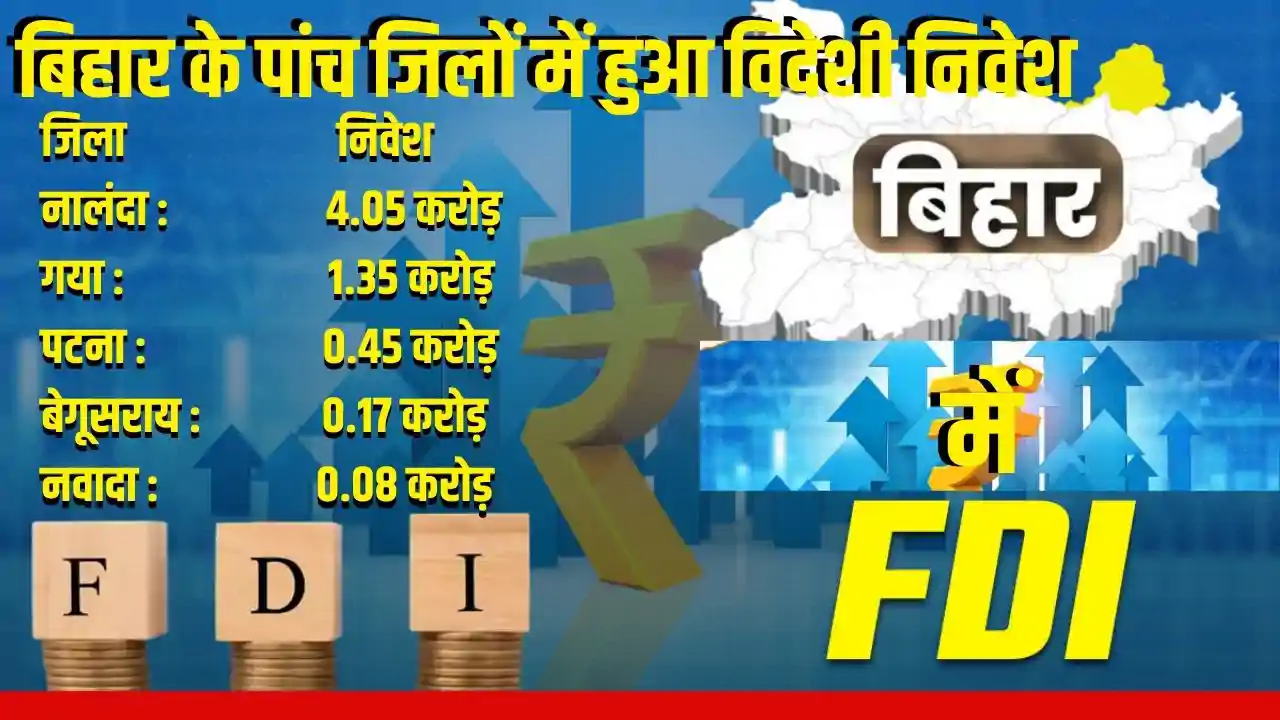आंकड़ों के मुताबिक, वर्ष 2025 में देशभर में कुल 3 लाख 84 हजार 369 करोड़ रुपये का प्रत्यक्ष विदेशी निवेश आया। इसमें बिहार का हिस्सा महज 6 करोड़ 9 लाख रुपये रहा.