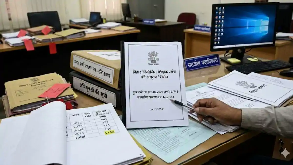Patna - बिहार सरकार के निगरानी अन्वेषण ब्यूरो द्वारा वर्ष 2006 से 2015 के बीच नियुक्त हुए नियोजित शिक्षकों के शैक्षणिक और प्रशैक्षणिक प्रमाणपत्रों की जांच की अद्यतन स्थिति रिपोर्ट जारी की गई है । माननीय उच्च न्यायालय, पटना द्वारा पारित आदेश (सी०डब्ल्यू० जे०सी० सं०- 15459/14) और निगरानी जांच संख्या बी०एस०- 08/15 के आलोक में यह कार्रवाई की जा रही है । इस जांच अभियान के तहत 28 फरवरी 2026 तक निगरानी ब्यूरो द्वारा कुल 6,67,144 प्रमाणपत्रों का सफलतापूर्वक सत्यापन किया जा चुका है ।