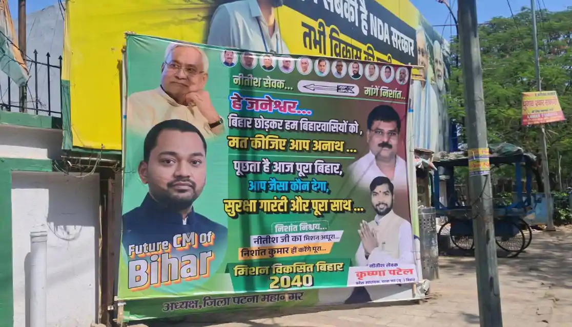 पटना में जदयू कार्यकर्ताओं द्वारा लगाए गए पोस्टरों ने नया विवाद खड़ा कर दिया है। इन पोस्टरों में नीतीश के बेटे निशांत कुमार को फ्यूचर CM बताया गया है और साथ ही लिखा गया है “हे जनेश्वर, नीतीश सेवक मांगे निशांत… पूछता है बिहार-आप जैसा कौन देगा सुरक्षा गारंटी और पूरा साथ।” इस संदेश ने पार्टी के भीतर चल रही खींचतान को और उजागर कर दिया है।