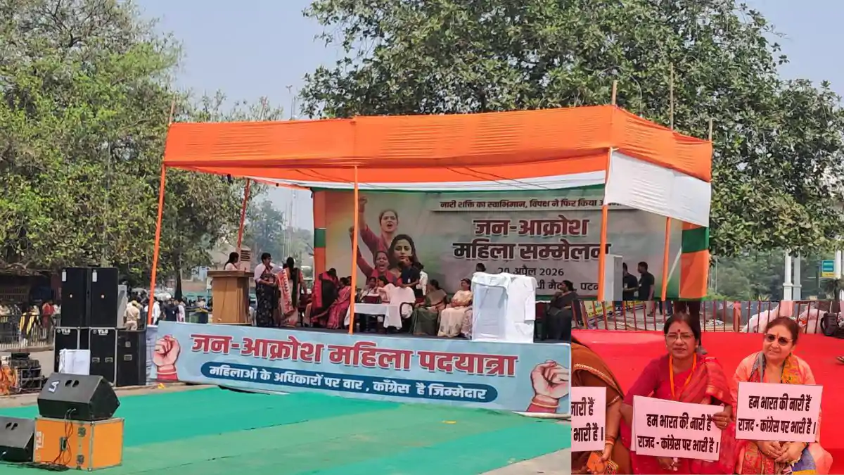 Women Reservation Bill: महिला आरक्षण बिल को लेकर भारतीय जनता पार्टी महिला मोर्चा की ओर से राजधानी पटना में ‘जन आक्रोश महिला सम्मेलन’ आयोजित किया जा रहा है। गांधी मैदान स्थित कारगिल चौक पर बड़ी संख्या में महिला कार्यकर्ता पहुंची हैं और जोरदार प्रदर्शन कर रही हैं। मंच पर पूर्व मंत्री श्रेयसी सिंह, लेसी सिंह और पटना मेयर सीता साहू मौजूद हैं। प्रदर्शन में शामिल महिलाओं के हाथों में पोस्टर हैं, जिन पर लिखा है “नारी शक्ति की झूठी कहानी, कांग्रेस की आदत पुरानी”। हम भारत की नारी हैं, राजद-कांग्रेस पर भारी है। इसके साथ ही महिलाएं “अपना हक लेकर रहेंगे” के नारे लगा रही हैं।
