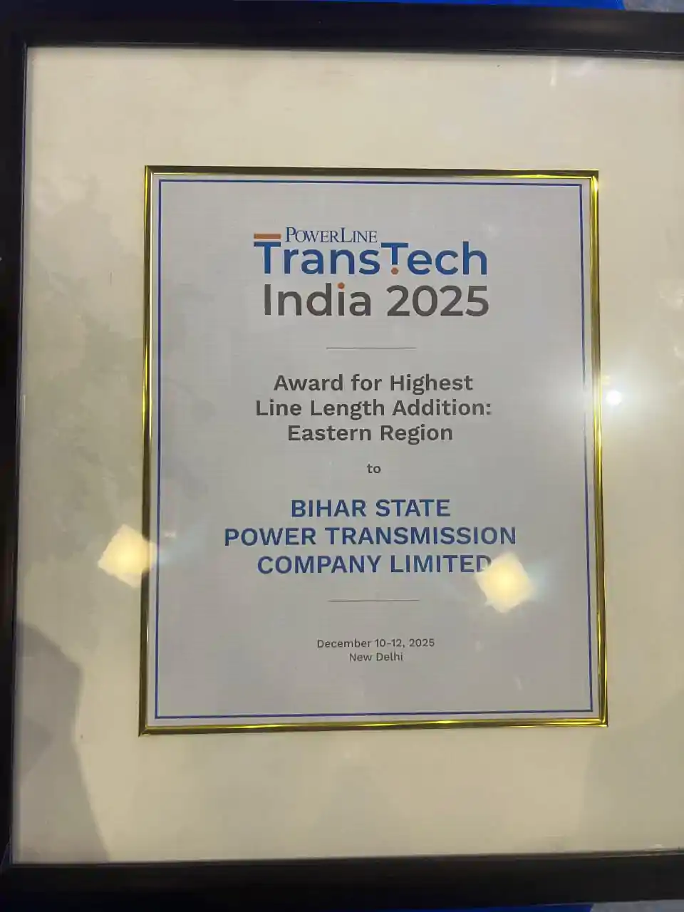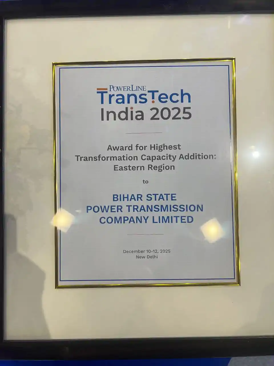 Patna - बिहार स्टेट पावर ट्रांसमिशन कंपनी लिमिटेड (BSPTCL) ने राष्ट्रीय स्तर पर एक बड़ी उपलब्धि हासिल की है। 10 दिसंबर 2025 को नई दिल्ली के द्वारका स्थित यशोभूमि इंडिया इंटरनेशनल कन्वेंशन एंड एक्सपो सेंटर में आयोजित भव्य 'पावरलाइन ट्रांसटेक इंडिया अवार्ड्स 2025' समारोह में कंपनी को दो प्रतिष्ठित पुरस्कारों से सम्मानित किया गया है। यह सम्मान बिहार के बिजली बुनियादी ढांचे में किए गए अभूतपूर्व सुधारों और पूर्वी क्षेत्र में सर्वश्रेष्ठ प्रदर्शन के लिए दिया गया है।