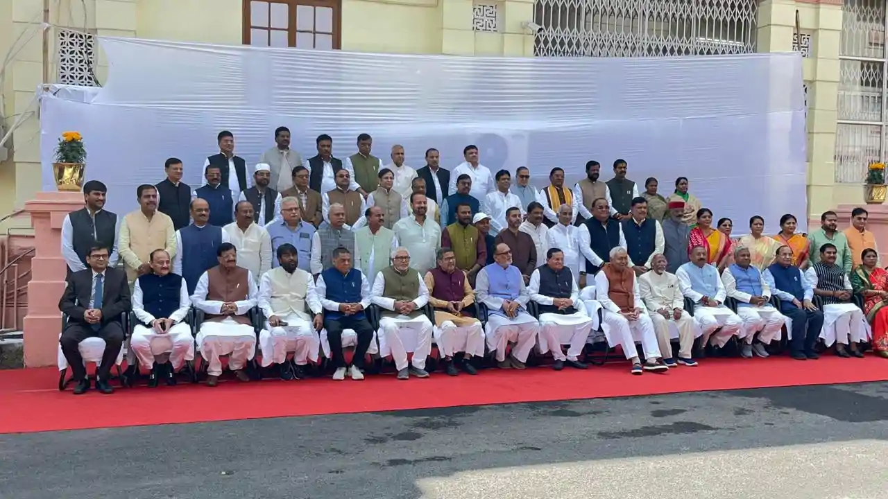 Bihar Budget Session: बिहार विधानमंडल में बजट सत्र के समापन से एक दिन पहले गुरुवार को फोटो सेशन का आयोजन किया गया। शुक्रवार को सत्र समाप्त होना है, उससे पहले आयोजित इस फोटो सेशन के दौरान मुख्यमंत्री नीतीश कुमार का अलग ही अंदाज देखने को मिला। फोटो सेशन के दौरान मुख्यमंत्री लगातार हाथ जोड़ते नजर आए। इसी बीच कैमरामैन की ओर से आवाज आई कि “सर, चेहरा छिप रहा है।”