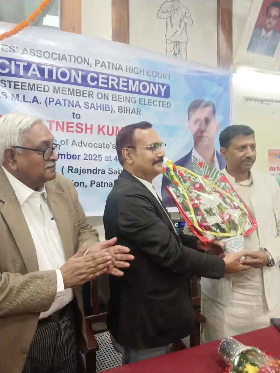 पटना साहिब से विधायक बने हाईकोर्ट के अधिवक्ता रत्नेश कुशवाहा का हाईकोर्ट के वकीलों ने किया सम्मान, हुए भावुक
