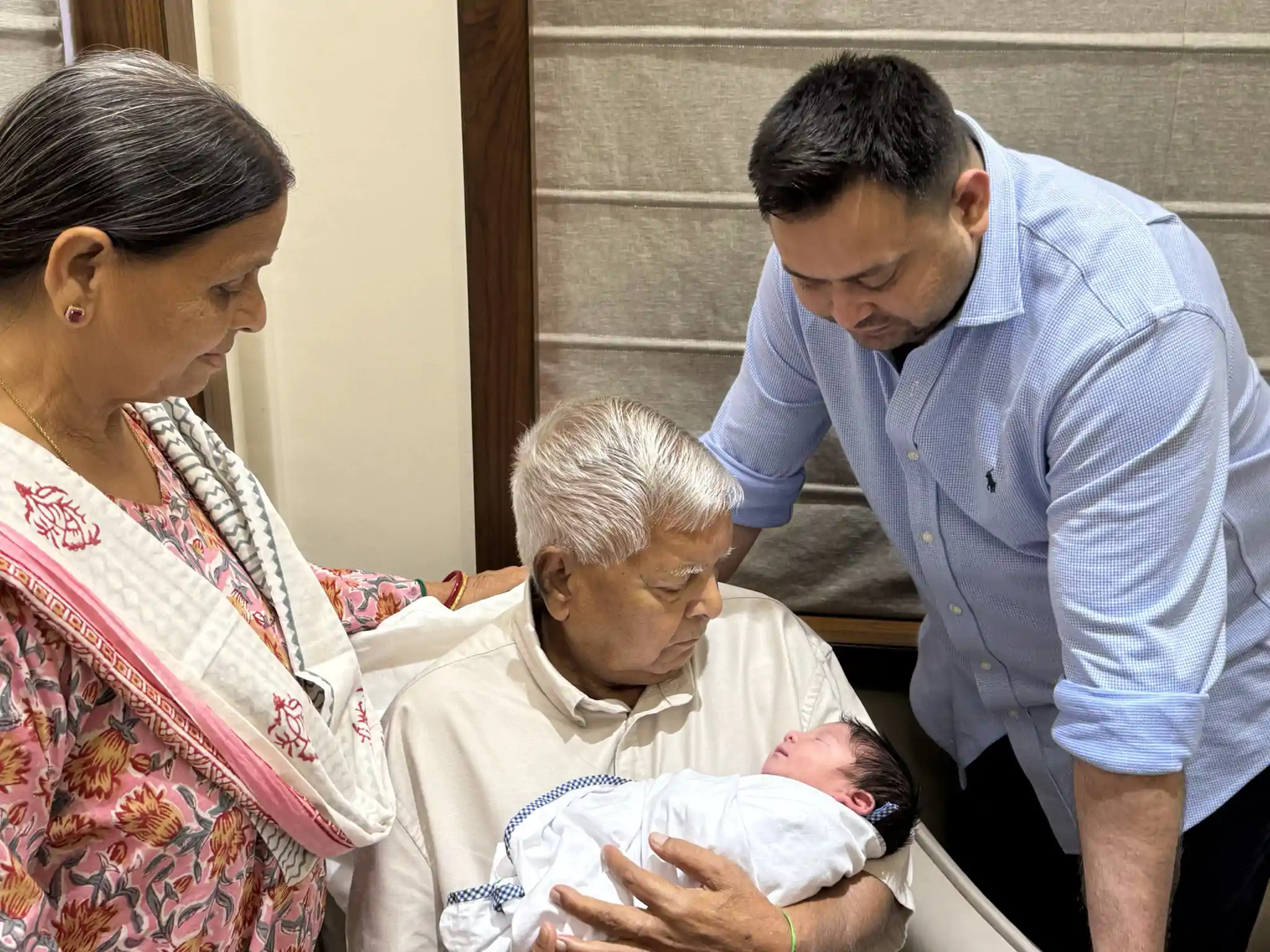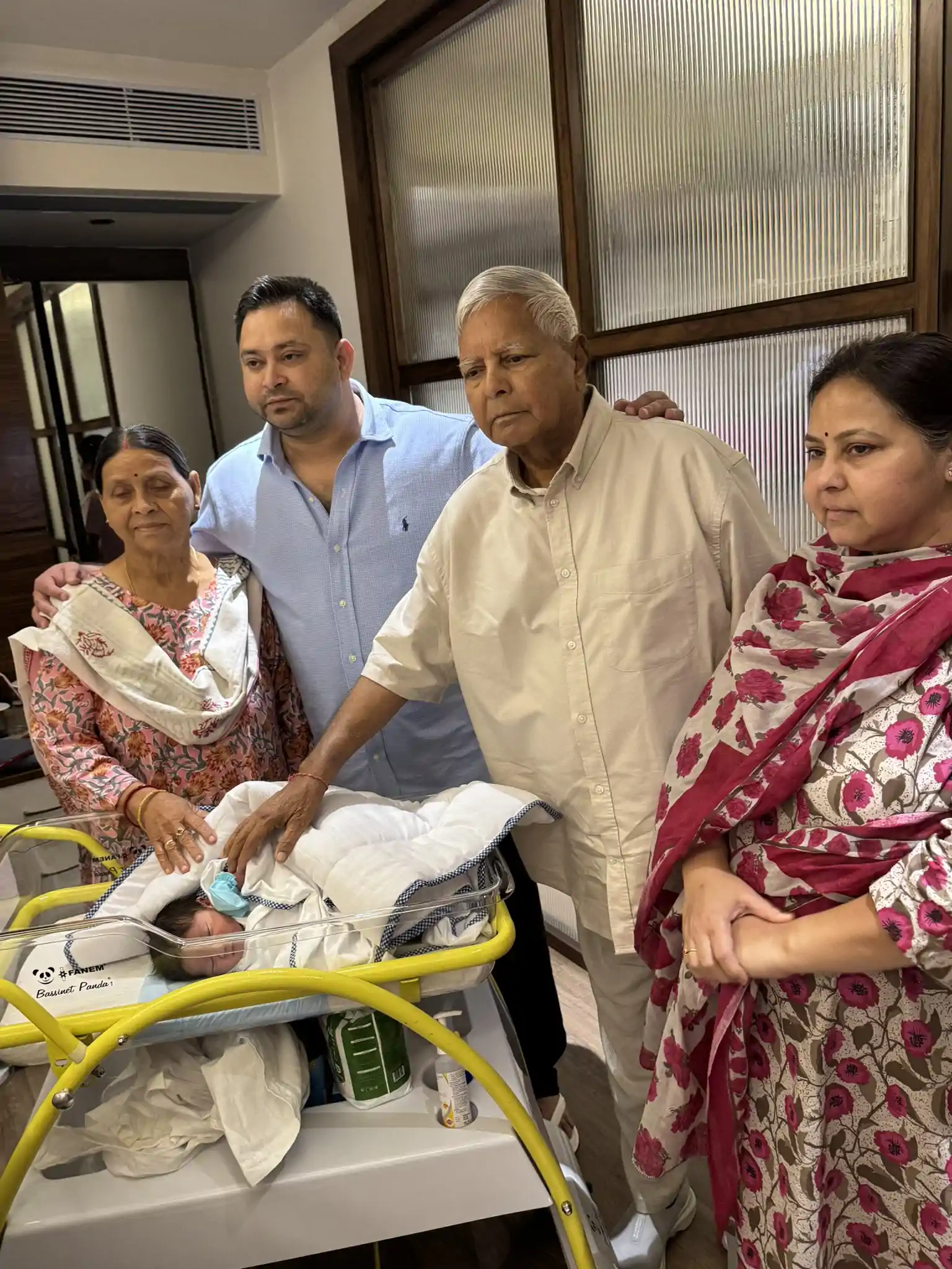 तस्वीर में राजश्री यादव भी दिख रही हैं। वहीं लालू यादव अपने पोते को आशीर्वाद देते नजर आ रहे हैं। राबड़ी देवी भी अपने पोते को देख कर खुश नजर आ रही हैं। तेजस्वी बड़े ही प्यार से अपने बेटे को निहार रहे हैं। वहीं राजश्री यादव भी खुश नजर आ रही हैं।