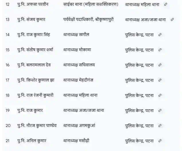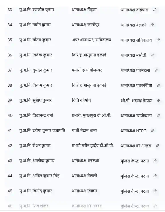 पटना पुलिस महकमे में बड़ा फेरबदल: 46 पुलिस पदाधिकारियों का तबादला, कई थानेदारों को भेजा गया पुलिस लाइन