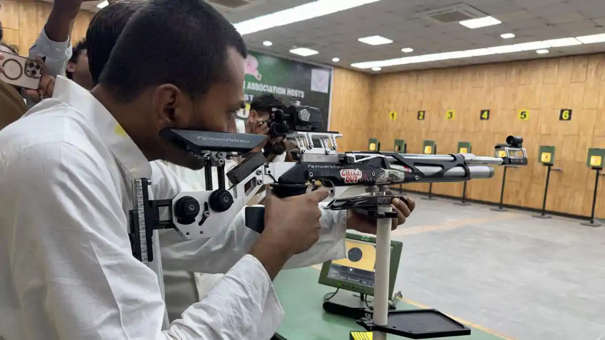 निशांत का नया अवतार, जदयू में शामिल होते ही थामा 'गन', शूटिंग रेंज में लगाया निशाना