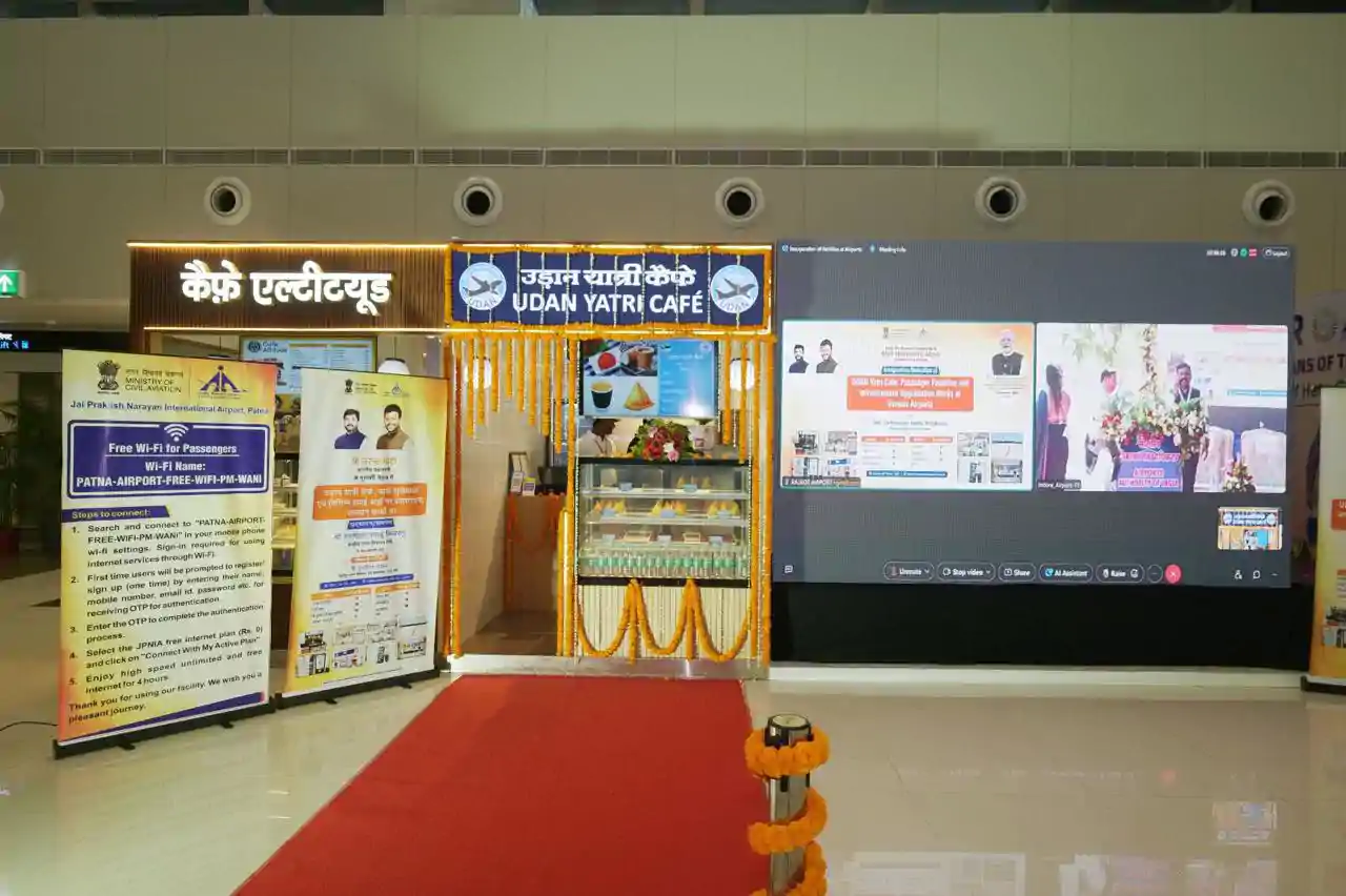 पटना के जय प्रकाश नारायण हवाई अड्डे पर यात्री सुविधाओं का विस्तार। नागरिक उड्डयन मंत्री राममोहन नायडू ने किफायती 'उड़ान यात्री कैफे' और हाई-स्पीड वाई-फाई सेवा का किया शुभारंभ।