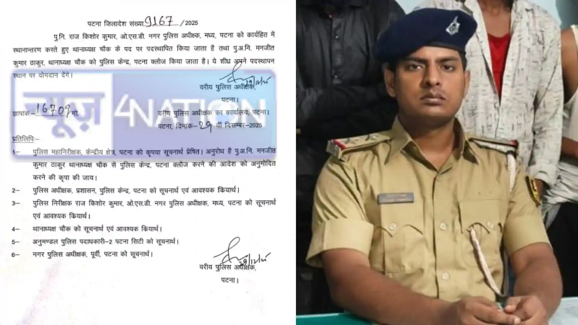 पुलिस मुख्यालय ने चौक थानाध्यक्ष मनजीत कुमार ठाकुर को पटना क्लोज किया है तो वहीं उनके स्थान पर राज किशोर कुमार को चौक थाना का थानाध्यक्ष नियुक्त किया है। पुलिस मुख्यालय की ओर से जारी आदेश में दोनों पदाधिकारियों को शीघ्र अपने-अपने नवीन पदस्थापन स्थल पर योगदान देने का निर्देश दिया गया है।