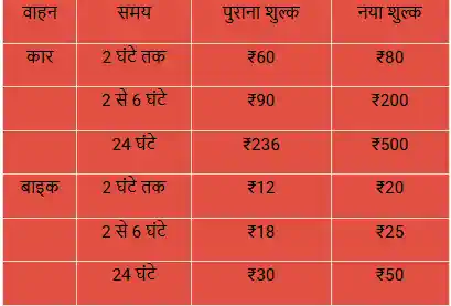 बाइक पार्किंग: दो घंटे का शुल्क ₹12 से बढ़ाकर ₹20 कर दिया गया है। 24 घंटे के लिए अब ₹30 की जगह ₹50 देने होंगे।