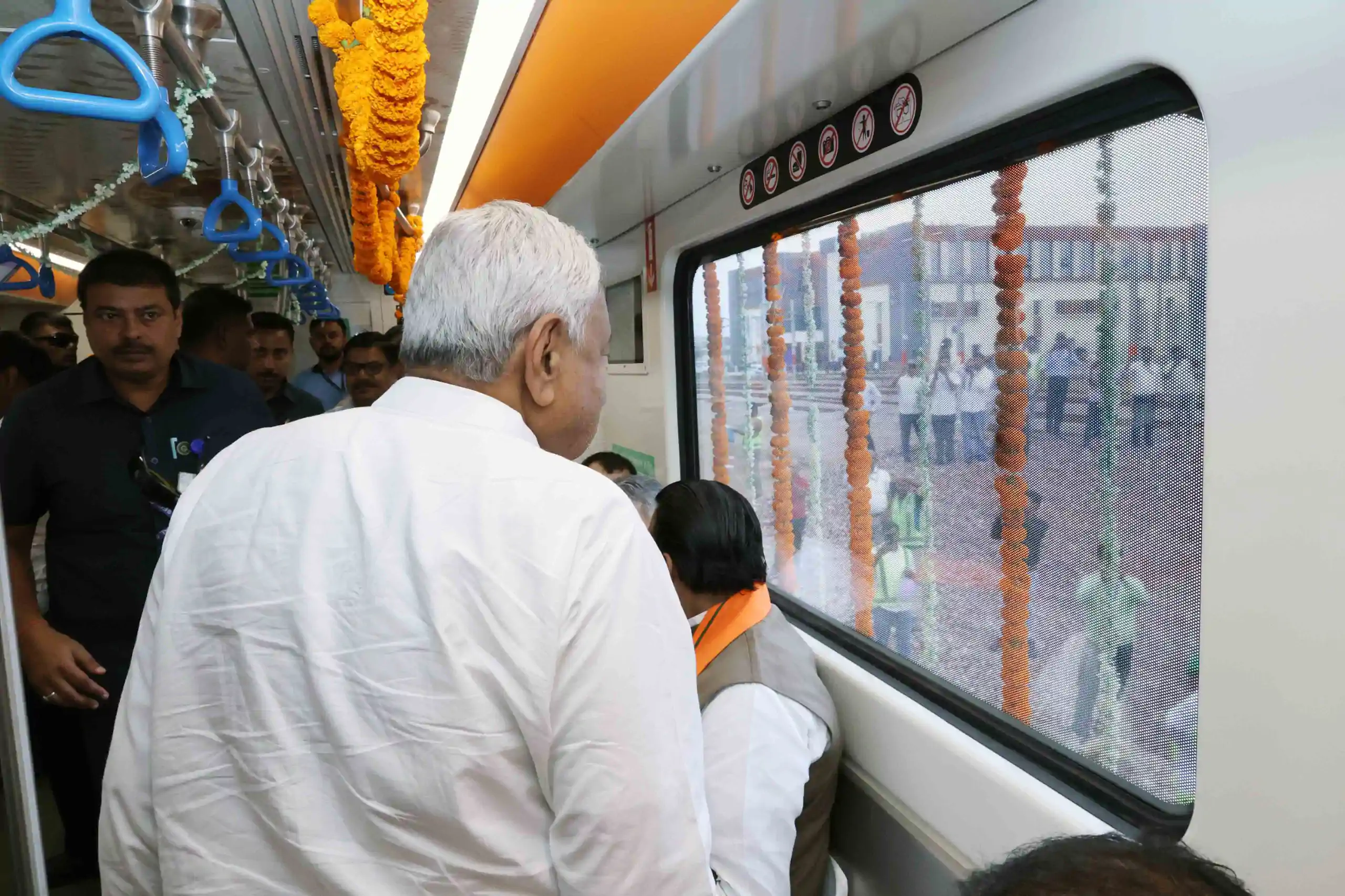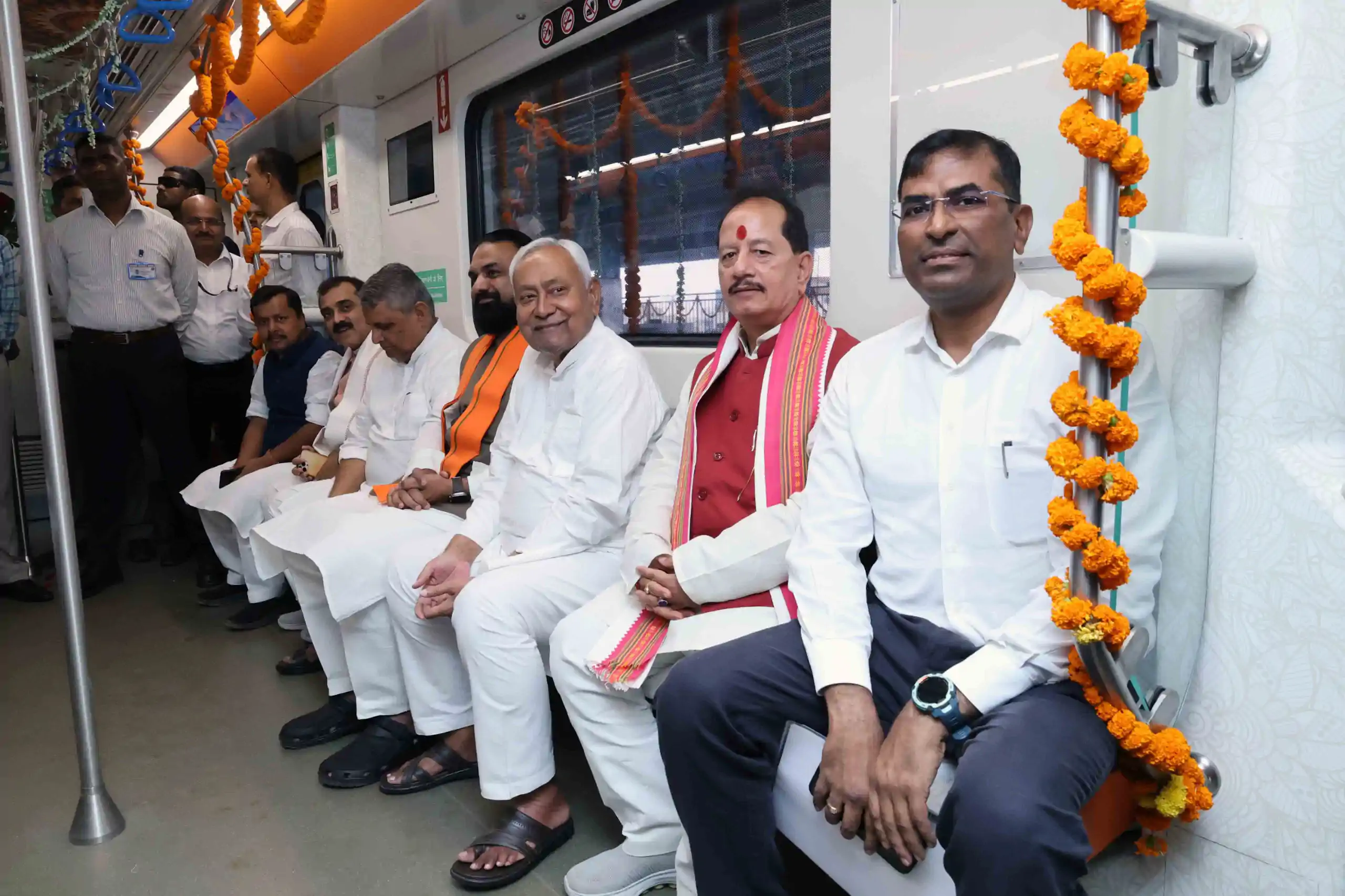सीएम नीतीश ने सोमवार को हरी झंडी दिखाकर ना सिर्फ रवाना किया बल्कि खुद भी सफर का आनंद लिया। पटना मेट्रो में बैठकर सीएम नीतीश आईएसबीटी से जीरोमाइल होते हुए भूतनाथ तक गए। सीएम नीतीश के साथ उपमुख्यमंत्री सम्राट चौधरी और विजय सिन्हा, मंत्री विजय चौधरी, मंत्री नितीन नवीन, मंत्री जीवेश मिश्रा, बिहार राज्य नागरिक परिषद के महासचिव अरविंद कुमार सिंह उर्फ छोटू सिंह भी मौजूद रहे।