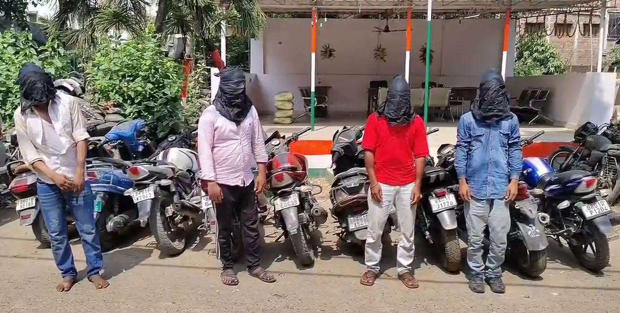 : पटना के फुलवारीशरीफ में पुलिस ने अंतरराज्यीय बाइक चोर गिरोह का भंडाफोड़ किया। जीजा-साला समेत 4 गिरफ्तार, 9 चोरी की बाइकें बरामद। मास्टरमाइंड पर दर्ज हैं 20 केस।