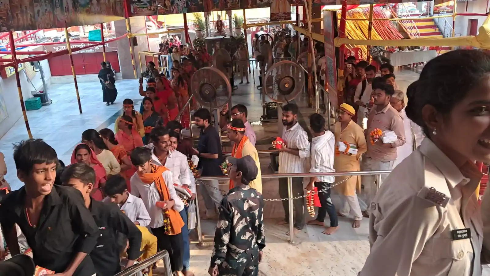 लंबी कतार में खड़े श्रद्धालु