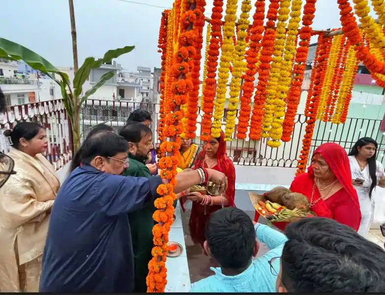 Patna - छठ महापर्व के दौरान आज पटना में पारंपरिक गंगा घाटों के अलावा एक नया और तेजी से बढ़ता प्रचलन देखने को मिला। नदी के घाटों पर होने वाली भारी भीड़ से बचने के लिए, शहर के कई इलाकों में छठ व्रतियों ने अपने घरों की छतों पर बने कृत्रिम हॉद (टैंक) और बड़े टबों में खड़े होकर भगवान भास्कर को अर्घ्य दिया।