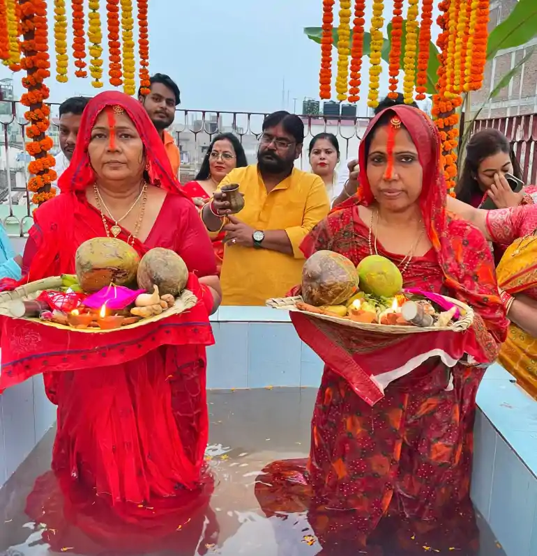 इस वर्ष यह देखा गया कि कई अपार्टमेंट और घरों की छतों पर ईंटों और सीमेंट से छोटे-छोटे हौज (हॉद) बनाए गए, या फिर प्लास्टिक के बड़े टबों का इस्तेमाल किया गया। व्रती महिलाओं ने इन्हीं कृत्रिम जलकुंडों में खड़े होकर अस्त होते सूर्य को अर्घ्य दिया।