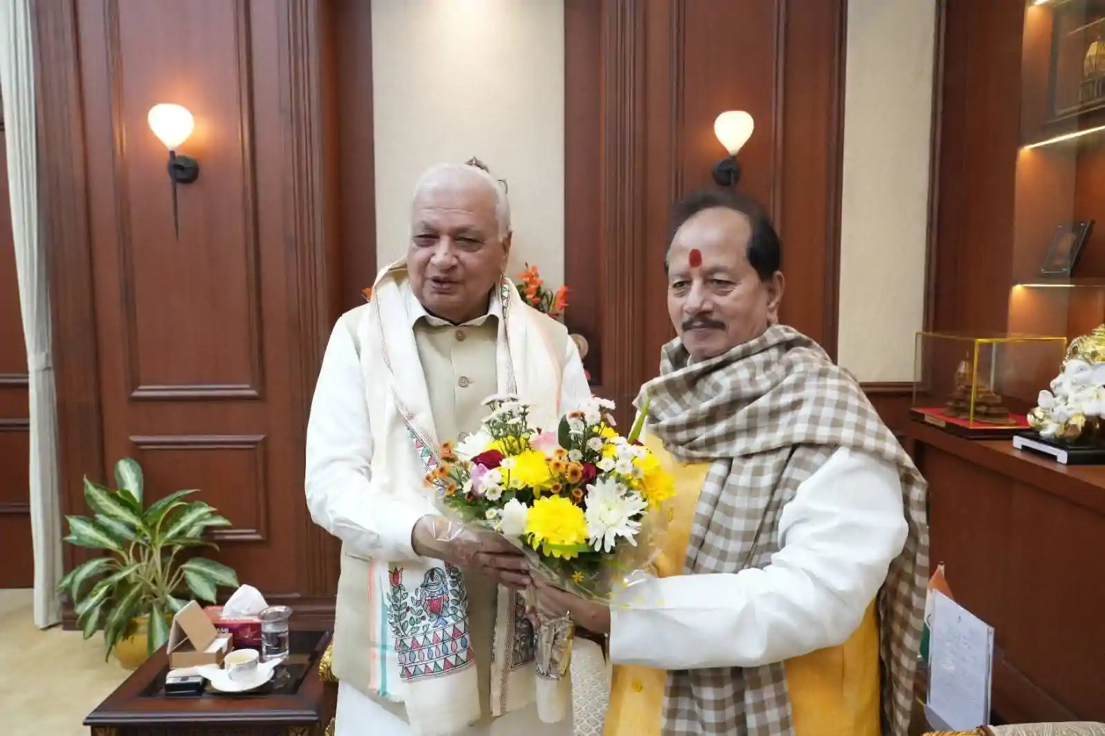 इस दौरान उप मुख्यमंत्री सम्राट चौधरी और विजय सिन्हा ने एक दूसरे को तिलकुट खिलाकर मकर संक्रांति की बधाई दे.