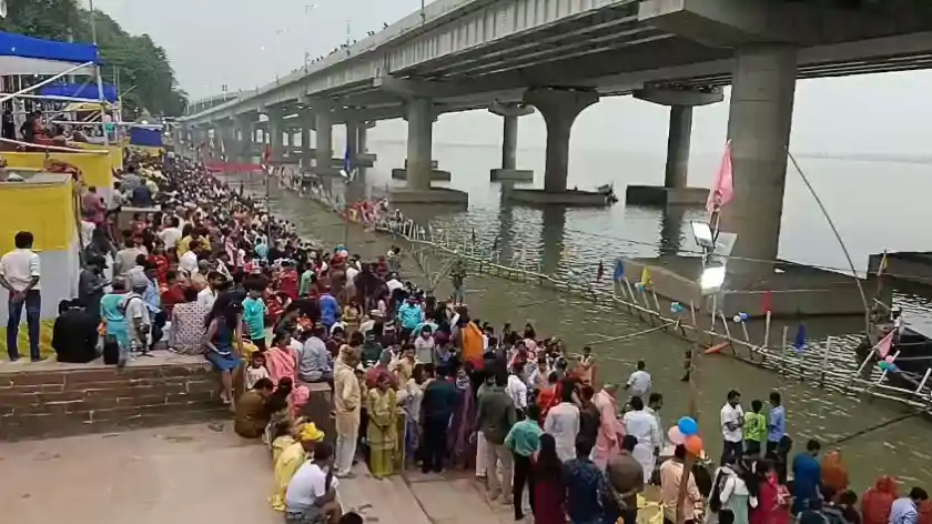 Patna : आस्था के महापर्व छठ के तीसरे दिन आज राजधानी पटना के गंगा घाटों पर भक्ति और आस्था का विहंगम दृश्य देखने को मिला। अस्ताचलगामी (डूबते हुए) सूर्य को पहला अर्घ्य देने के लिए हजारों की संख्या में छठ व्रतधारी और श्रद्धालु पटना के सभी प्रमुख घाटों पर उमड़ पड़े।