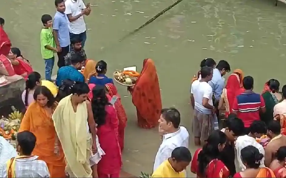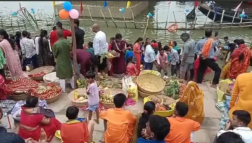 वहीं व्रतियों ने पानी में खड़े होकर भगवान सूर्य की उपासना की और डूबते हुए सूर्य को दूध और गंगाजल से अर्घ्य दिया।