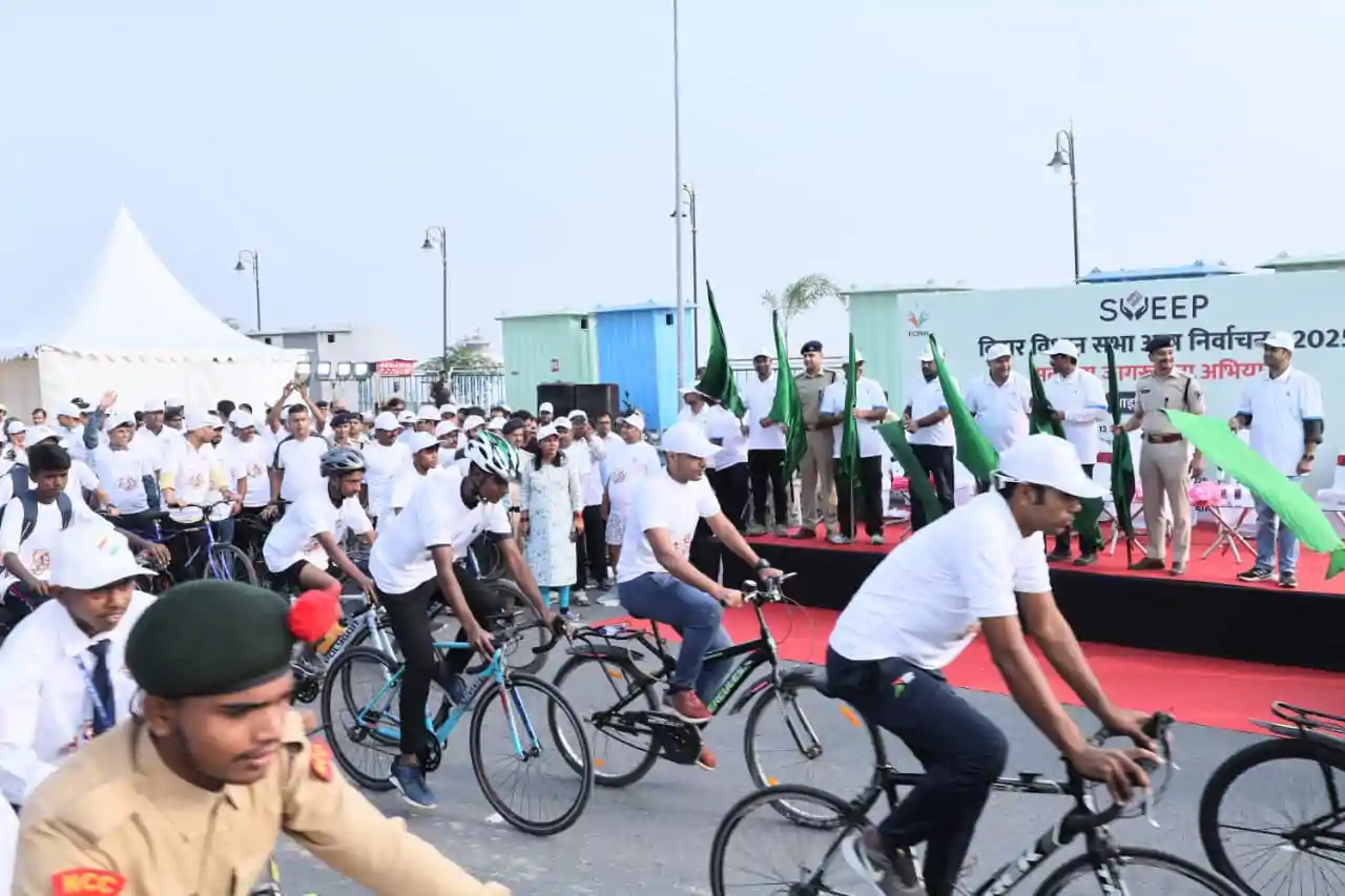 Bihar Election 2025: बिहार विधानसभा आम निर्वाचन 2025 के दौरान मतदान प्रतिशत में वृद्धि के उद्देश्य से जिला प्रशासन पटना की ओर से व्यापक मतदाता जागरूकता अभियान चलाया जा रहा है। जिला निर्वाचन पदाधिकारी-सह-जिलाधिकारी पटना के निर्देश पर रविवार 12 अक्टूबर 2025 को स्वीप कोषांग के बैनर तले एक विशाल साइकिल रैली का आयोजन किया गया। यह रैली सुबह 6 बजे जे.पी. गंगापथ के रोटरी गोलम्बर से शुरू होकर लगभग 9 किलोमीटर की दूरी तय करते हुए कृष्णा घाट पर समाप्त हुई। प्रतिभागियों को सुबह 5:30 बजे तक रोटरी गोलम्बर पर उपस्थित हुए।