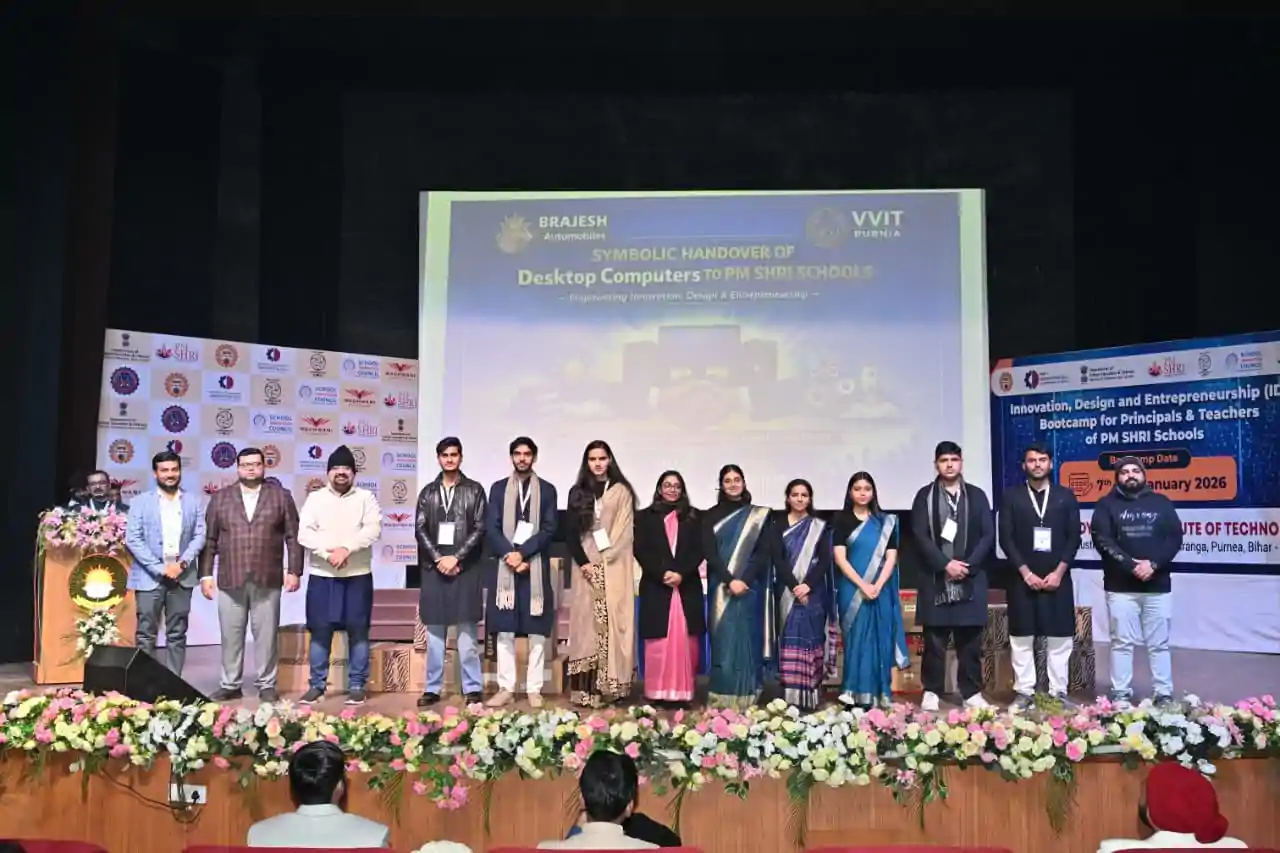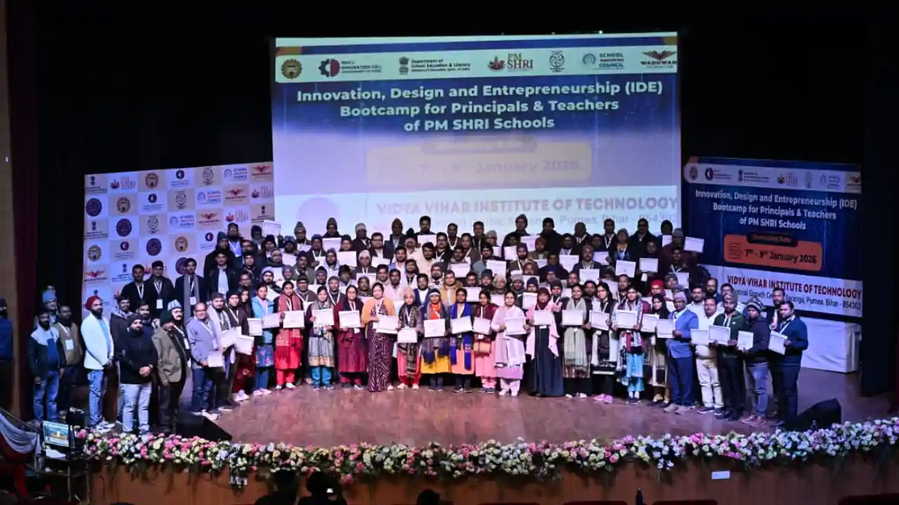 PURNEA : देश की स्कूली शिक्षा व्यवस्था को इनोवेशन, डिज़ाइन थिंकिंग और एंटरप्रेन्योरियल माइंडसेट से सशक्त बनाने की दिशा में एक महत्वपूर्ण राष्ट्रीय पहल के अंतर्गत फेज–3 इनोवेशन, डिज़ाइन एंड एंटरप्रेन्योरशिप (आईडीई) बूटकैंप 2026 का तीन दिवसीय आयोजन 07 जनवरी से 09 जनवरी 2026 तक विद्या विहार रेसिडेंशियल स्कूल, परोरा, पूर्णिया के परिसर में भव्य रूप से संपन्न हुआ। इस कार्यक्रम का आयोजन विद्या विहार इंस्टीट्यूट ऑफ टेक्नोलॉजी, पूर्णिया द्वारा किया गया, जिसमें देश के विभिन्न क्षेत्रों से पीएम श्री स्कूलों के प्रिंसिपल्स एवं टीचर्स ने सक्रिय सहभागिता की। यह बूटकैंप डिपार्टमेंट ऑफ स्कूल एजुकेशन एंड लिटरेसी, ऑल इंडिया काउंसिल फॉर टेक्निकल एजुकेशन (एआईसीटीई) तथा मिनिस्ट्री ऑफ एजुकेशन इनोवेशन सेल के संयुक्त तत्वावधान में वाधवानी फाउंडेशन के सहयोग से आयोजित किया गया। कार्यक्रम का मुख्य उद्देश्य पीएम श्री स्कूलों के प्रिंसिपल्स एवं टीचर्स को इनोवेशन आधारित टीचिंग प्रैक्टिसेज, डिज़ाइन थिंकिंग, समस्या समाधान क्षमता तथा एंटरप्रेन्योरियल लीडरशिप से जोड़ते हुए स्कूल एजुकेशन में सकारात्मक और व्यावहारिक परिवर्तन लाना रहा।
