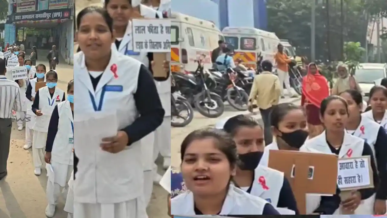 Bihar News: विश्व एड्स दिवस के अवसर पर समस्तीपुर के सदर अस्पताल में सोमवार को वह नज़ारा देखने को मिला, जिसने न सिर्फ़ स्वास्थ्य जागरूकता को नई दिशा दी, बल्कि समाज में जमी रूढ़ियों को भी झकझोर कर रख दिया। अस्पताल परिसर में जुटी GNM छात्राओं ने जब सड़क पर उतरकर अपने हाथों में पोस्टर उठाए और नारे बुलंद किए अगर पति आवारा हो, कंडोम ही सहारा हो, परदेस नहीं जाना बलम जी, एड्स न लाना बलम जी” तो माहौल एकाएक जागरूकता, व्यंग्य और संकल्प के संगम में बदल गया।ये नारे जितने तंज़ भरे थे,संदेश साफ़ था: “एड्स से लड़ाई शर्म-हया से नहीं, समझदारी से जीती जाती है।”