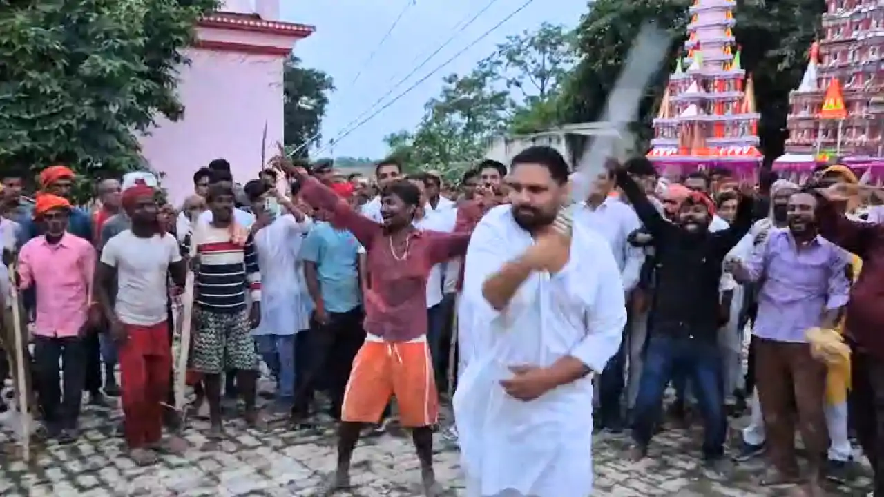 Bihar News : महावीरी झंडा मेले में पूर्व सांसद आनंद मोहन के बेटे चेतन आनंद ने दिखाया करतब, तलवारबाजी देख हैरान रह गए लोग