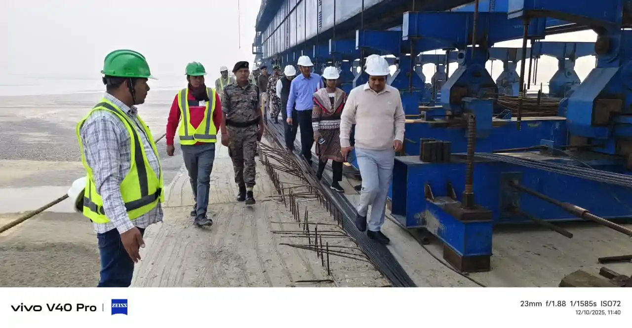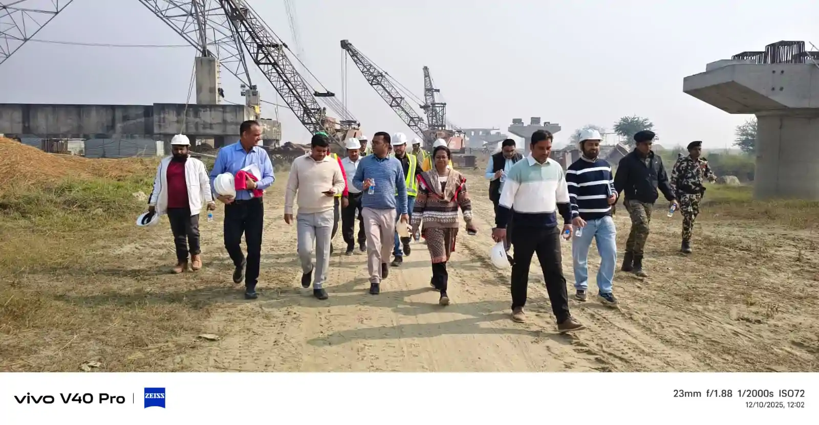 निरीक्षण के दौरान डीएम के साथ उप विकास आयुक्त (DDC) सुश्री सारा अशरफ, जिला भू-अर्जन पदाधिकारी और एनएचएआई (NHAI) के अभियंता मौजूद थे। डीएम ने संवेदक (Contractor) और इंजीनियरों के साथ कार्य प्रगति की समीक्षा की। बताया गया कि अब तक लगभग 85 प्रतिशत निर्माण कार्य पूरा कर लिया गया है। डीएम सावन कुमार ने स्पष्ट निर्देश दिया कि हर हाल में जून 2026 तक पुल को जनता के लिए तैयार किया जाए।