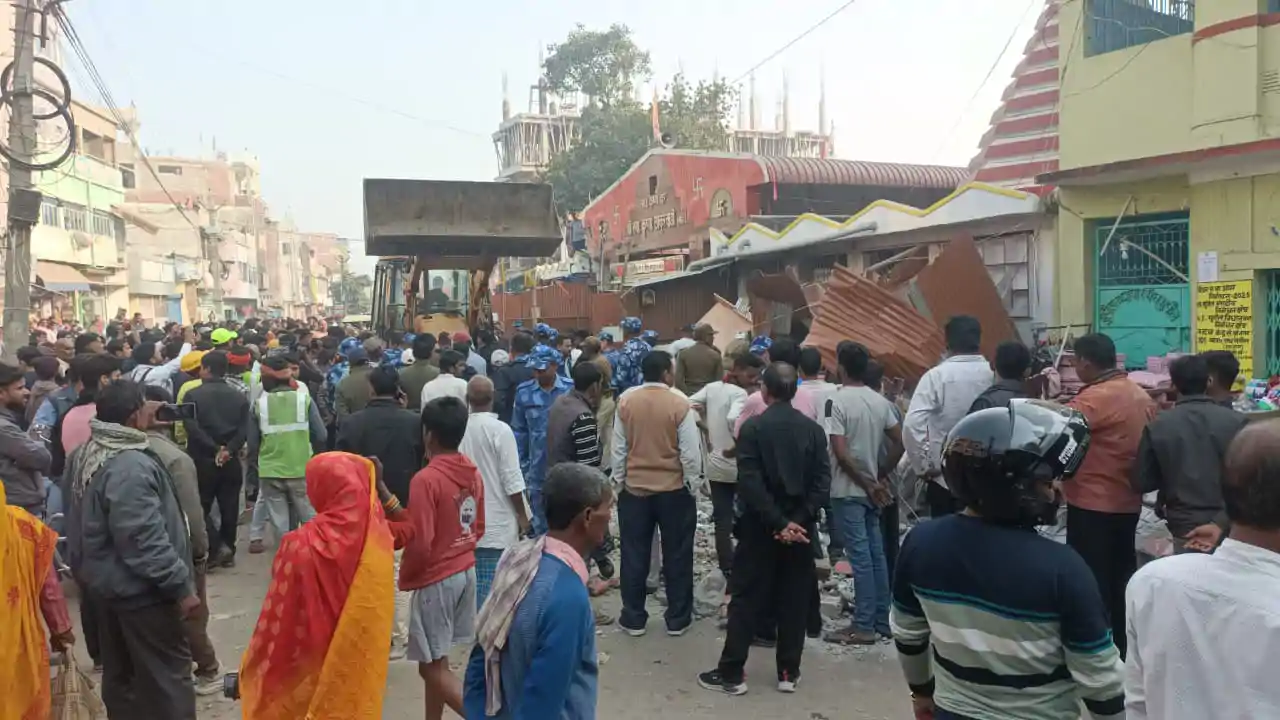Supaul - सुपौल शहर में जाम की समस्या को देखते हुए पुनः मंगलवार को भी अतिक्रमण एवं जाम करने वाले ई रिक्शा चालक, ठेला चालक, दुकानदारों एवं अवैध पार्किंग करने वालों पर कार्रवाई की गई। अनुमंडल पदाधिकारी सदर इंद्रवीर कुमार व कार्यपालक पदाधिकारी अरविंद कुमार सिंह के नेतृत्व में अतिक्रमण हटाओ अभियान की शुरुआत महावीर चौक से किया गया। जैसे ही टीम स्टेशन चौक होते हुए पटेल चौक के समीप बाहर बने अस्थायी दुकान को हटाने लगी कि अचानक स्थानीय लोग उग्र हो गए और बुलडोजर के सामने खड़ा होकर तोड़फोड़ का विरोध करते हुए कहा कि पहले सब्जी मंडी रोड में अवस्थित राधाकृष्ण ठाकुरबाड़ी के बाहर बने दुकान को तोड़े फिर यहां से अतिक्रमण हटेगा।