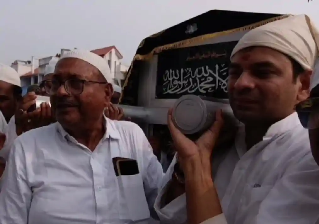 कब्र पर मिट्टी डालने हेलीकॉप्टर से पहुंचे लालू यादव के बड़े लाल तेज प्रताप यादव , चुनावी क्षेत्र में जनाजे में लगाया कंधा